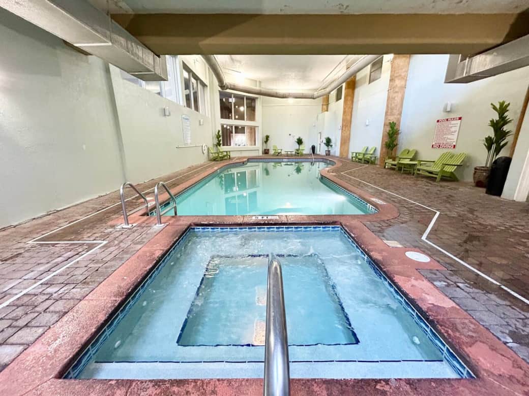 Check-in is self-service, but you must reserve your parking pass before arrival. Wristbands provide access to all resort amenities, including the fitness center, heated indoor pool, hot tub, outdoor lagoon-style pool, and direct beach access. Please note: garage clearance is 7 feet.