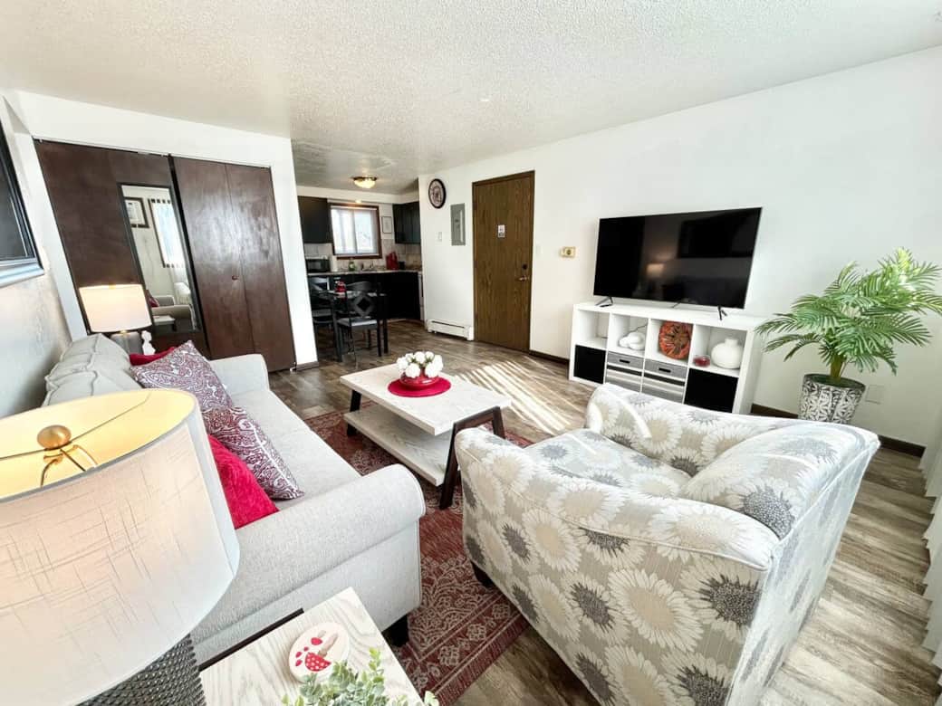 Have fun with the whole family at this calm, quiet, stylish apartment. The apartment offers a large master bedroom with a king size bed, the 2nd bedroom has a bunk bed with a twin size top and a full size lower bed, a spacious living room with a 65 inch smart TV, a full bathroom and a fully equipped kitchen with everything you need to prepare and serve a meal. Wifi and free Parking. Located in walking distance to Linn-Mar schools and only 4 minutes from Uptown Marion and area restaurants.